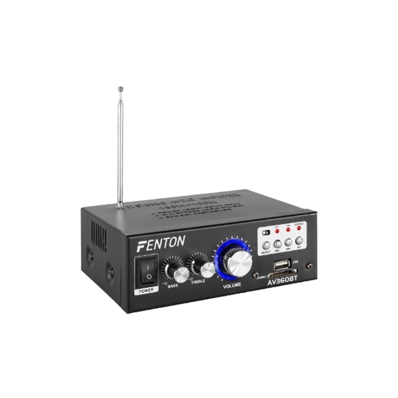 Mini amplificatore per uso domestico con elevata efficienza: anche ai livelli di volume più alti garantisce un'elevata pressione acustica. Controlli alti e bassi separati e volume master. Tuner FM integrato. Ingresso AUX RCA per sorgente esterna. Dimensioni e peso contenuti. Porta USB e slot SD MP3 compatibili. BT integrato per connessione diretta a sorgenti come smartphone. Potenza 2x 40W a 8?. Telecomando incluso. Dimensioni 160 x 115 x 55mm, peso 0,95Kg. Alimentazione 220Vca e/o 12Vcc.