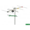 Antenna Yagi Banda III VHF a 4 elementi Canali E l'antenna è stata realizzata con dipolo chiuso e culla portante da 18x12x0,8 mm con elementi in tubo da 10x 08 mm. L'antenna viene fornita completamente preassemblata e dipolo con alto guadagno ed ottima direttività.