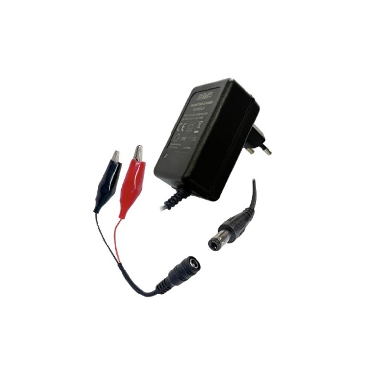 Caricabatteria per batterie al piombo 12V da 0,8Ah a 15Ah. Corrente di carica 1500mA. Dotato di LED di segnalazione di fine carica. Protetto da sovratensioni e corto circuiti e controllo della gestione di ricarica. Spinotto CC 5.5x2.5 (2,1)mm con adattatore per pinze a coccodrillo Rosso/Nera.