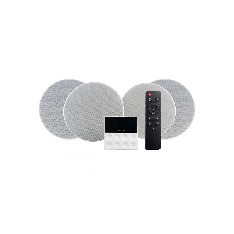 Sistema audio: amplificatore stereo compatto con altoparlanti da soffitto 4 x 6''.