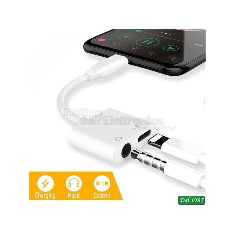 CAVO DI RICARICA PER IPHONE 7-8-X ALIMENTAZIONE 5 VOLT DC + CONNETTORE AUDIO 3,5 mm