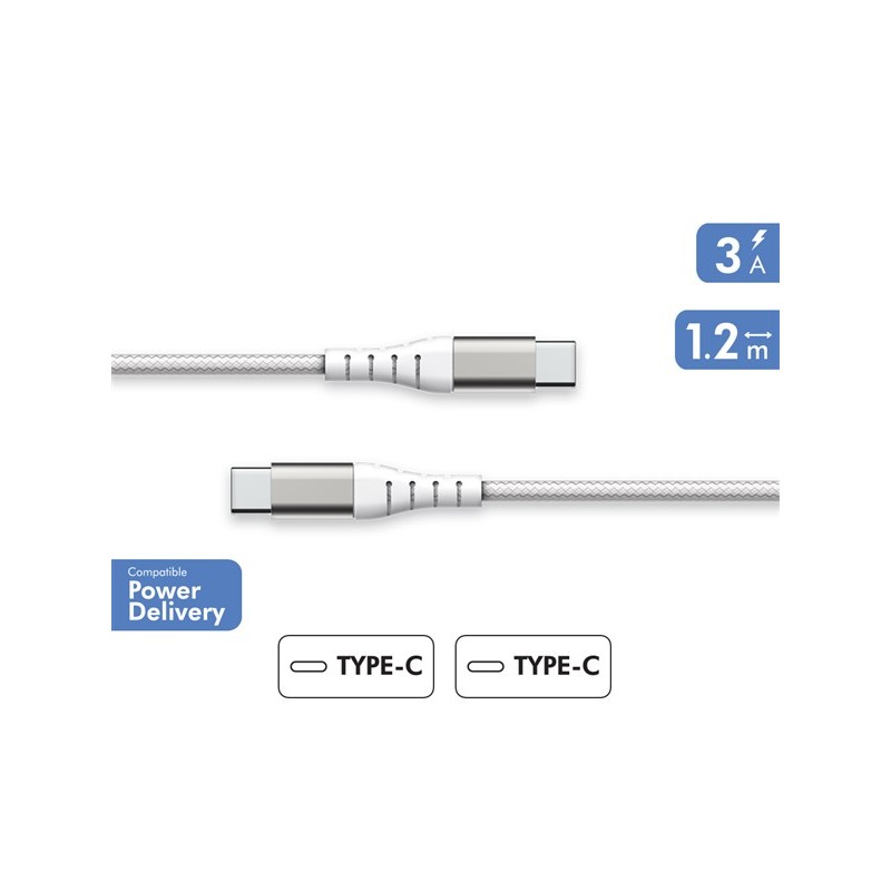 CAVO USB C / USB C RINFORZATO 1,2 METRI 3 AMPER COLORE BIANCO GARANZIA A VITA