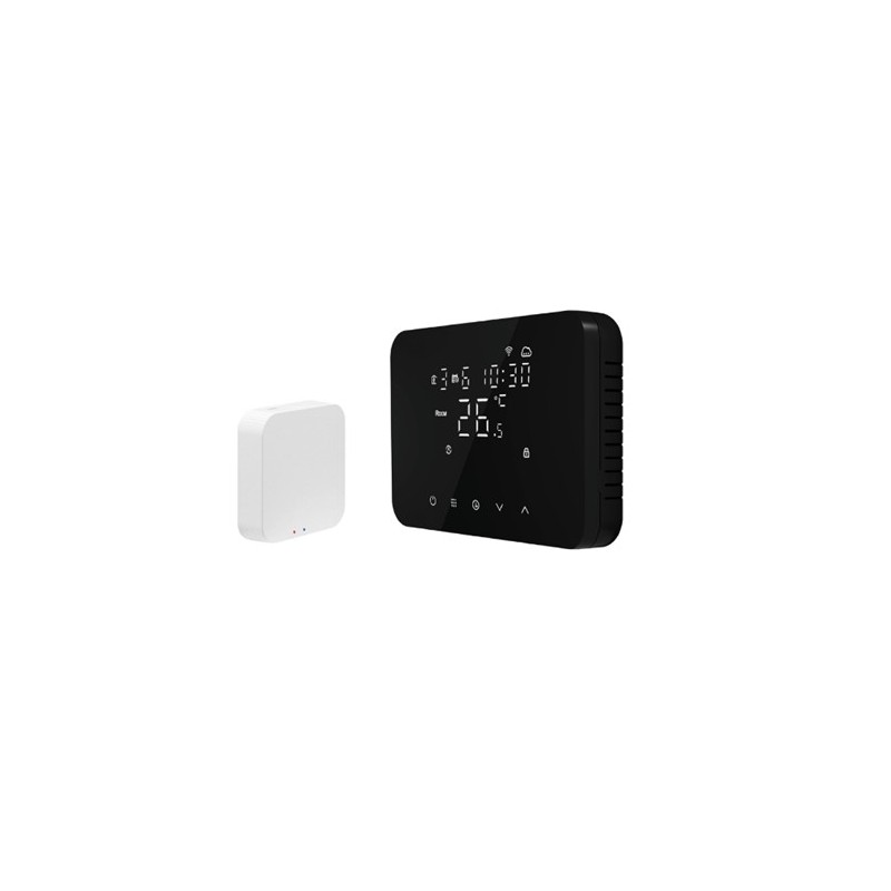 Grazie al suo Hub Gateway (cod. 68.6811.00) fornito in dotazione, è possibile collegarlo al wi-fi e controllarlo da remoto tramite App HeySmart. Il termostato è dotato di relè a contatto pulito che lo rende compatibile con la maggior parte dei termostati.