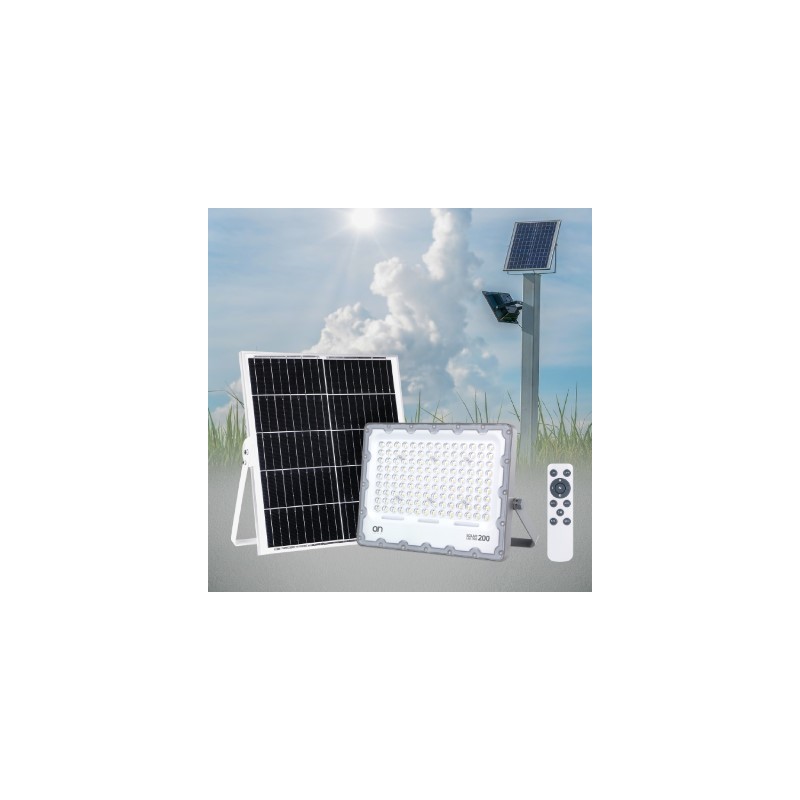 Sistema per illuminazione LED a batteria con ricarica solare di elevata qualità, composto da un pannello fotovoltaico monocristallino con staffa per installazione a parete, da un faro per esterno con design moderno e di ridotto spessore, che integra una batteria ricaricabile ad elevate prestazioni e da un telecomando per il controllo e la gestione delle funzionalità manuali e programmate. Accensione del faro consentita in modalità automatica al calar della luce diurna.Scheda Prodotto:Potenza Solare Flusso Luminoso 2400 lm Temperatura Colore 4000 °K Tipo Led 2835 Indice di resa cromatica (CRI) >80 Angolo Illuminazione 120 ° Driver IC Dimmerabile No Alimentazione 3.2 Vdc Batteria Sì Conessione Cavo 2mt Sensore No Funzioni aggiuntive Solare, Telecomando, Timer Cicli di accensione medi 12500 Durata Media 25000 h Equivalenza - Classe Energetica - Grado di Protezione IP65 Installazione Parete staffa regol. Cavo H05RNF Diffusore Trasparente Materiale Alluminio Dimensioni 27x19.8x4 cm Colore Grigio Peso 1.84 Kg Tipo Batteria LiFePO 3.2Vdc - 20Ah Tempo di ricarica (min.) 4 h Autonomia (media) 8/12 h Tensione pannello 5 Vdc Potenza pannello 25 W Tipo pannello Monocristallino Dimensioni pannello 35x45x1.7 mm Peso pannello 1.7 Kg Lunghezza Cavo 2 m Confezione Scatola