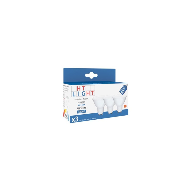 FARETTI LED GU10 230 VOLT 6 WATT 470 LM 6000°K CONF 3 PEZZI