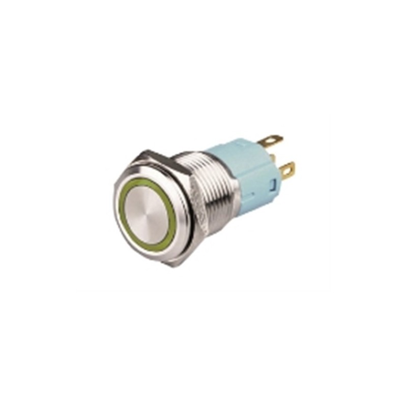 INTERRUTTORE A PULSANTE STABILE ANTIVANDALO 16mm LUMINOSO GIALLO 12 VOLT