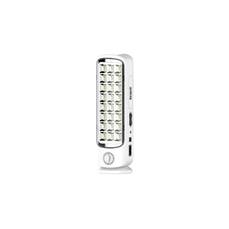 Lampada 7.5W da 24 LED SMD ricaricabile anti black-out. Batteria ricaricabile al litio 3.7V / 1.5Ah. Alimentazione 230V / 50Hz (cavo incl.) Si accende automaticamente in caso di mancanza di corrente. Due modalità luminose: massima intensità (2 ore) e modalità risparmio (15 ore). Indicatore LED di ricarica. Sistema di protezione da sovraccarico. Dimmer, presa aggiuntiva 12V in ingresso e fori per il fissaggio a muro