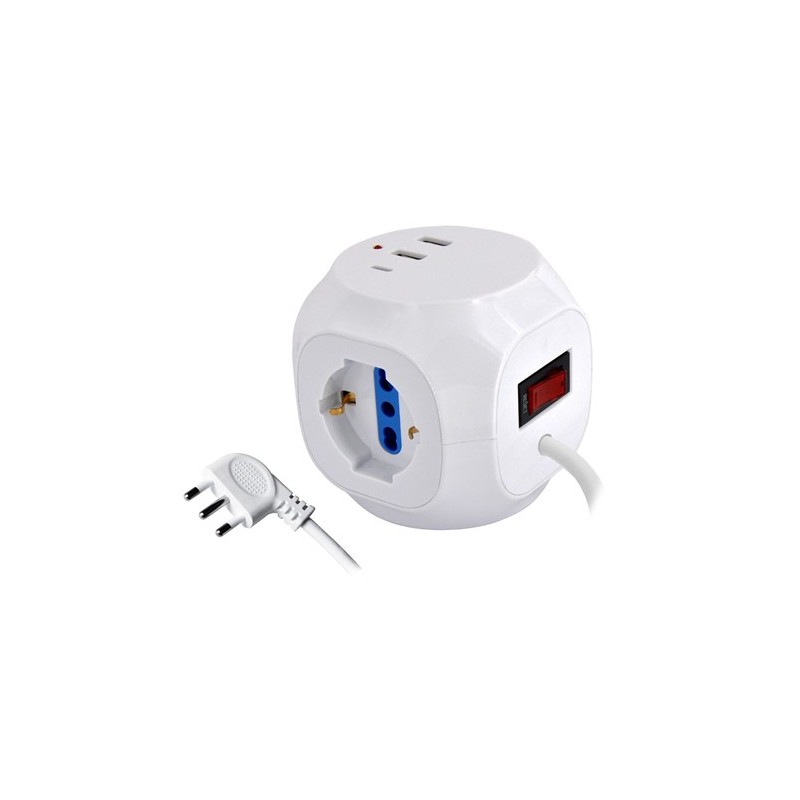 MULTIPRESA A CUBO 3 PRESE UNIVERSALE + 2 USB + 1 USB Type C
