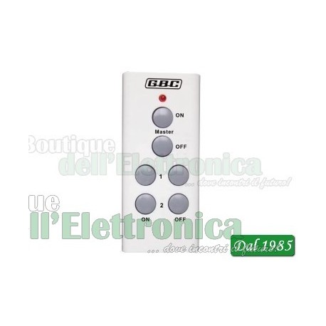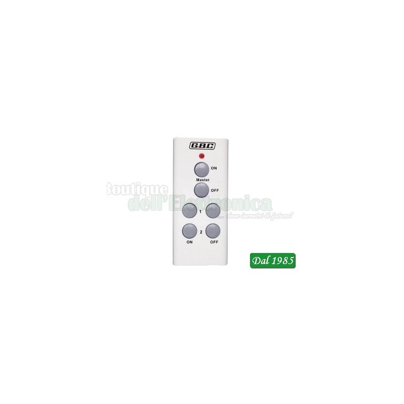 Telecomando aggiuntivo in radiofrequenza RF433Mhz per Kit cod. 64.0580.50. Ideale per poter controllare l’accensione e spegnimento di apparecchiature e luci con il semplice uso del telecomando. E' possibile gestire 2 prese separatamente oppure accendere e spegnere simultaneamente entrambe le prese.