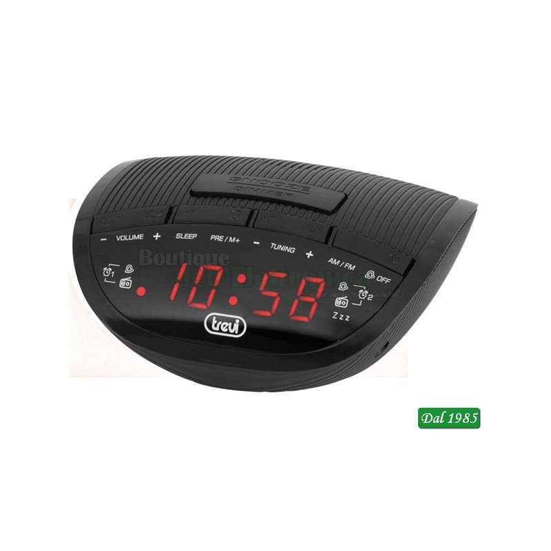 La Radiosveglia Elettronica Trevi permette di programmare due differenti sveglie. Anche lo spegnimento è programmabile, grazie alla funzione Sleep, mentre l'interruzione momentanea è resa possibile dalla funzione Snooze.