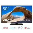 Televisore 50” a LED UHD 4K 3840 x 2160, Android TV, sintonizzatore per antenna terrestre (DVB-T2), satellitare (DVB-S2) o cavo (DVB-C), HEVC H.265, supporta SatCR, Slot CI, 4 porte HDMI, 2 porte USB, 1 porta LAN, WiFi, Bluetooth, uscita cuffie e digitale per home cinema. Più di 7000 app su Google Play, servizi di streaming, YouTube, giochi, media center TV e altri. Triplo sintonizzatore per segnali TV live. Telecomando ergonomico con ricerca vocale, Bluetooth e pulsanti retroilluminati. Assistente Google a disposizione per trovare i video su YouTube e gli ultimi film di successo o per fare ricerche su Internet. Chromecast integrato per lo streaming di video, sport, musica e altro dallo smartphone al TV. Riproduzione di video o musica da dispositivo USB esterno Tipo Smart TV Dimensioni schermo 50" Risoluzione del display UHD 4K Risoluzione video 3840 x 2160 Pixel Sistema operativo Android TV HEVC H.265 Supporto audio Dolby Digital Plus 5.1 Potenza audio 2 x 10 W Porte HDMI 4 Porte USB 2.0 2 Porte LAN Ethernet 1 Slot CI+ 1 Ingresso A / V 1 x RCA Uscita audio digitale 1 x Ottica Presa Cuffie 1 Presa VGA 1 Wi-Fi IEEE 802.11b/g/n (2.4 GHz); IEEE 802.11a/n/ac (5 GHz) Bluetooth 4.2 Vesa 200 x 200 mm Alimentazione 220 - 240 Vac Potenza assorbita in esercizio max 135 W Consumo energetico in standby 0.5 W Larghezza 111.9 cm Profondità 23.5 (6.6 senza base) cm Altezza 69.9 (64.7 senza base) cm Diagonale schermo 126 cm Peso 11.25 Kg Colore Nero Classe Energetica G