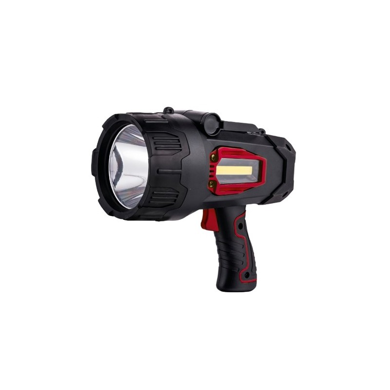 Faro ricaricabile 10W LED + 3W LED COB, 1300m + 200lm. Batteria 3.7V / 4.0Ah incorporata. 4 modalità luminose: High-Low-COB-flash COB. Tempo di ricarica: 6 ore. Autonomia: 7 ore (min) e 2.5 ore (max). Presa USB 5V / 1A per la ricarica.